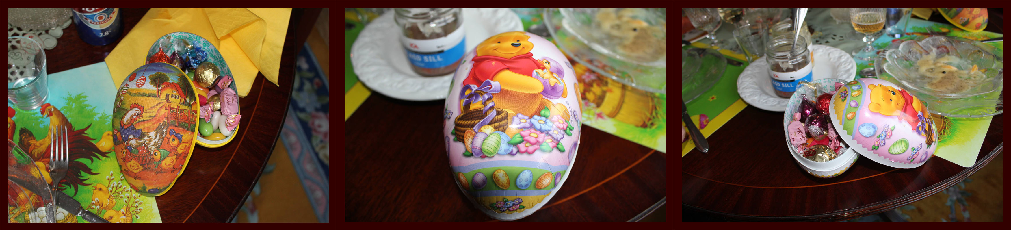 Non si tratta, infatti, di uova di cioccolato: sono invece delle scatole (di cartone o plastica) che, una volta aperte, rivelano un interno fatto di dolci e cioccolatini, e magari qualche sorpresa o soldino. Anche gli adulti si scambiano talvolta piccoli regali: in genere, cose come tazze, “casette pasquali” (portaoggetti a forma di case per animali), piatti o, comunque, oggettistica per la casa. Uova svedesi
