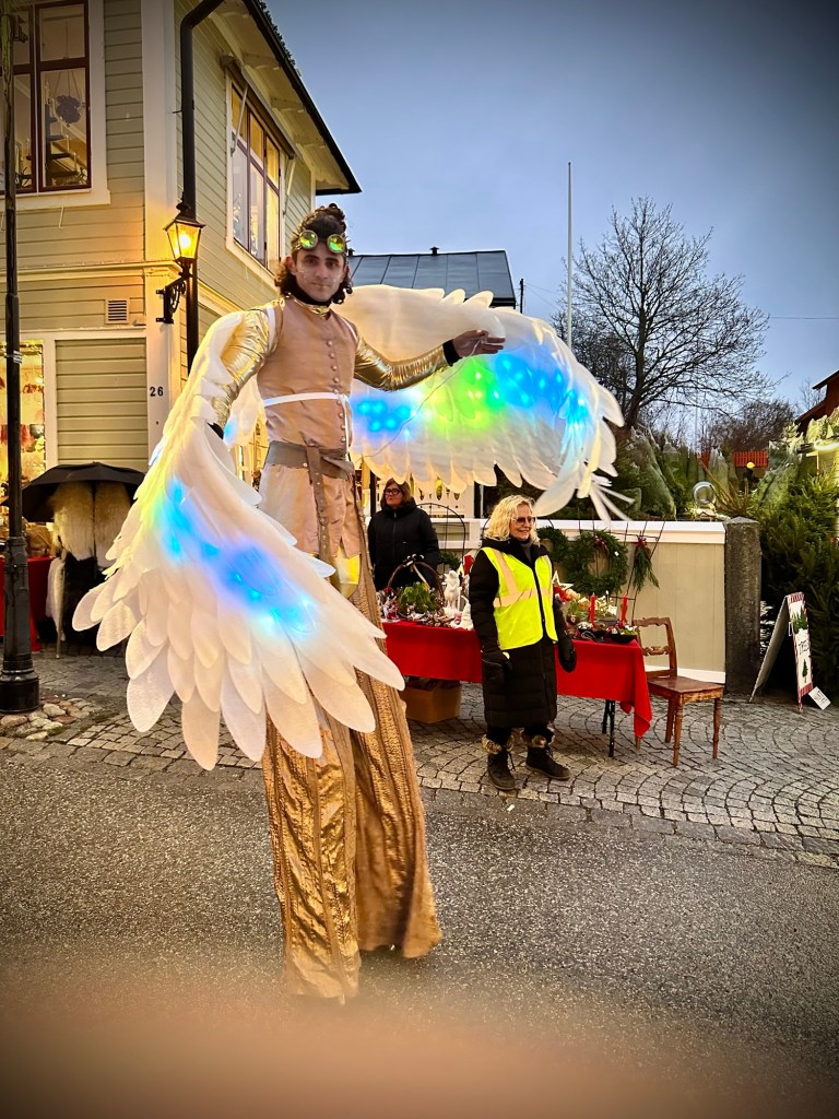L’accesso principaleSalumi ed altroAlberi di NataleUn personaggio curiosoManca solo la neveBancarelleConsumismo d’atmosferaUna classe vende dolci, cioccolata calda ed altro per finanziarsi la gita scolastica Tutte le bancarelle espongono il codice QR per il sistema di pagamento via cellulare Swish Anche caffè da torrefazione Un albero vero e uno di luceUna vecchia cabina del telefono in disuso, lasciata come elemento decorativoE c’è anche chi prova a vendere gelato