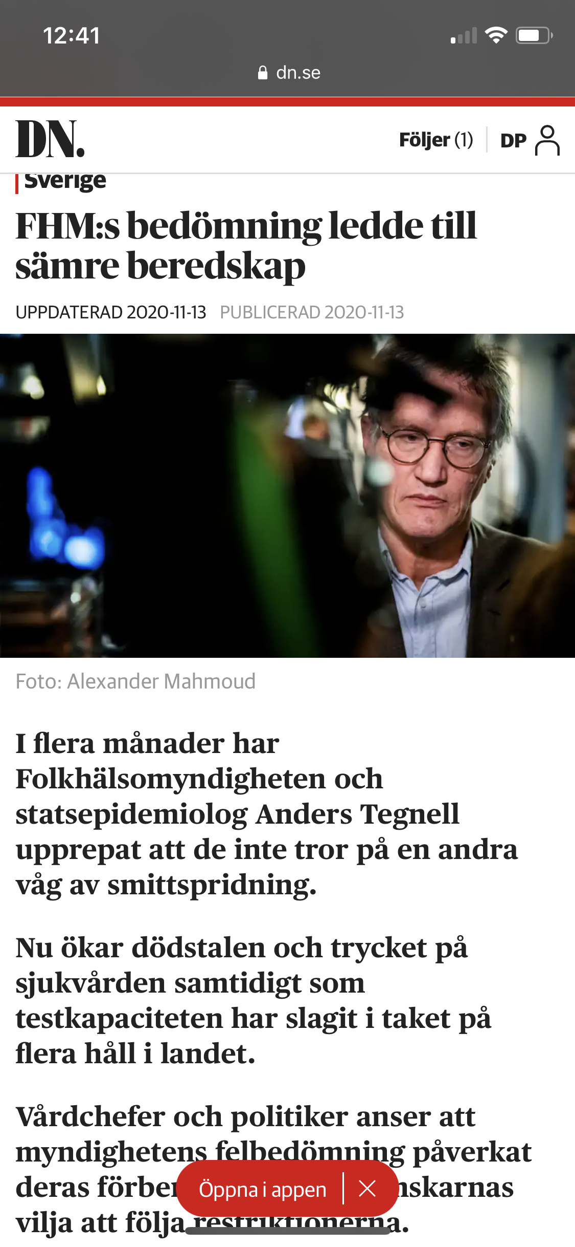 Per diversi mesi Folkhälsomyndigheten e l’epidemiologo di stato Anders Tegnell hanno detto di non credere ad una seconda ondata. Ora crescono il numero dei morti e la pressione sulla sanità, mentre la capacità di fare test ha raggiunto il limite in diverse parti del paese. Responsabili della sanità e politici ritengono cue gli errori di valutazione dell’autorità abbia influenzato la loro capacità di essere preparati e la volontà degli svedesi di seguire le restrizioni.
