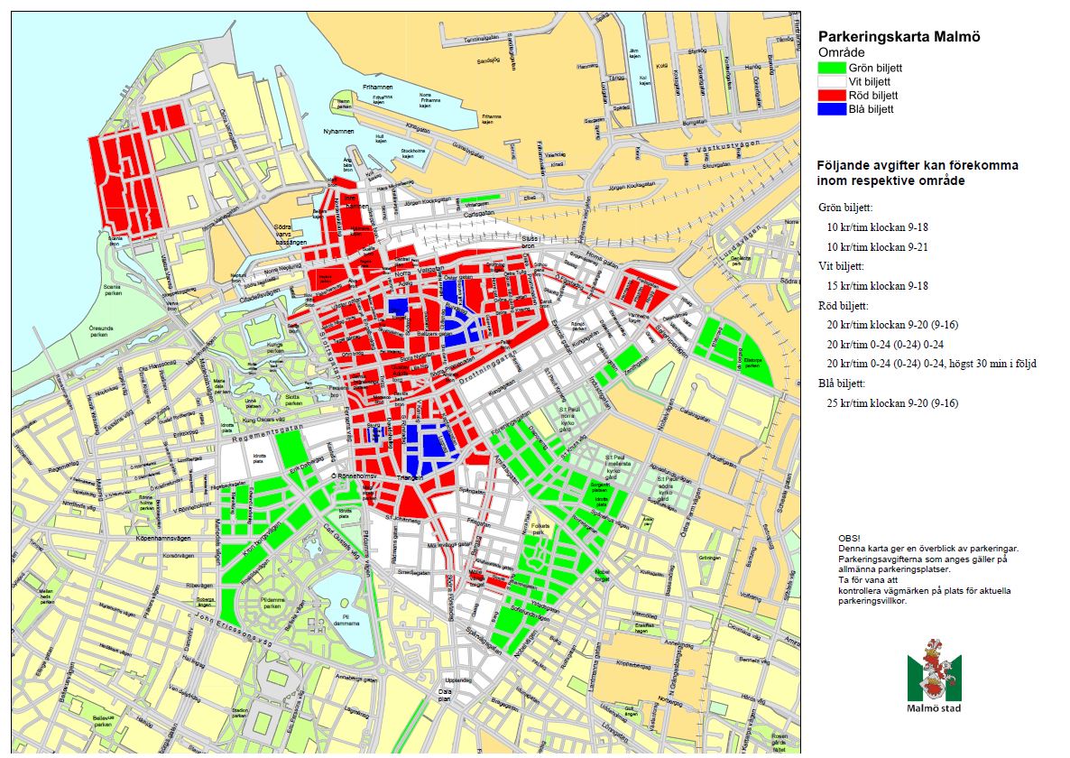 L’intero sistema dei parcheggi è affidato ad una società comunale chiamata Parkering Malmö: sono i loro addetti, e non i poliziotti, ad andare in giro per strada e fare le multe a chi non si comporta bene. A differenza che per gli addetti di società equivalenti italiane, hanno pieno potere di contravvenzione in tutta la città, e non solo, quindi, nelle aree a pagamento a loro assegnate.